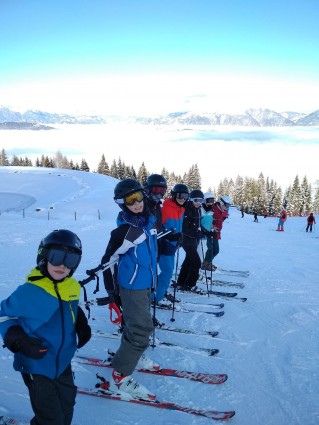 Reggelente olyan 7 körül mindannyiunk szeretete a tetőfokára hágott tanáraink (főleg Lőrincz tanár úr) iránt, és bizony csípős érzés volt kinyitni a szemünket, és kikászálódni az ágyból. Reggeli után bepakolás és indulás Nassfeldre. 110 kilométernyi pálya áll mindenkinek a rendelkezésére, hogy kiélje a síelés iránti minden elvárását. Ha esetleg valaki nem szereti űzni a sportot, de szívesen jön sítáborba, 25, azaz 25 osztrák, illetve olasz hütte áll rendelkezésére - ha jól számolom az naponta 5 különböző -, és nagy az esély rá, hogy mindenhol meglát egy ismerős arcot. A holtpont általában a szerda, ami a balesetek elkerülése végett mindig rövidített nap. Ez az ötlet idén is bevált, természetesen voltak kisebb incidensek, de szerencsére mindannyian egyben haza érkeztünk. Sajnos idén sem úsztuk meg a betegségeket, amelyek átsöpörtek a táboron. Itt említeném meg azokat a kísérőinket, akik nem a tanári kar tagjai: Dr. Gilly Gyulát, akinek óriási köszönettel tartozunk odaadó gondoskodásáért, és Norbit (Szarvas tanárnő férjét), aki megismertette velünk a ,,Síkresz” szabályait, és akitől egy életre megtanultuk, mit csináljunk, ha véletlenül beszakadna alattunk a jég.