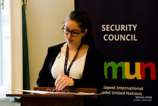 „Részt vettem az Eötvös József Gimnázium (EJG) által szervezett BIMUN (Budapest International Model United Nations) konferencián, ahol Oroszországot képviseltem a Biztonsági Tanácsban. A témák, amiket meg kellett vitatnunk: Ukrajna szuverenitása és területi integritása, valamint a venezuelai krízis. Mindkettő meglehetősen releváns az általam »képviselt« ország számára.
