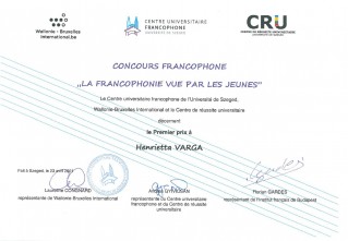 Idén tavasszal a frankofónia ünnepe alkalmából a Szegedi Tudományegyetem a Wallonie-Bruxelles International támogatásában meghirdetett egy francia versenyt, amelyre középiskolások pályázhattak. A versenyzőknek egy frankofón műalkotás, történelmi személyiség, esemény, tudományos felfedezés stb. bemutatásán keresztül kellett elmagyarázniuk, hogy mit jelent számukra a francia nyelv. Írhattak esszét, készíthettek fotómontázst, videót, dolgozhattak egyedül vagy párban. A verseny végeredménye mindannyiunk számára nagyon jó hír, ugyanis Henrietta videója a francia balettről első helyezett lett. Gratulálunk! Toutes nos félicitations!