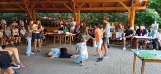 Megkaptuk a szobáinkat, ott letettük a cuccainkat, és csoportokba osztottak minket. Volt időnk bemutatkozni egymásnak, megismerni egymást, majd elkezdődött a verseny a csoportok között. Volt sorverseny, vizes feladat, szkander, joghurtevés csukott szemmel, tojásdobálás és frizbidobás. Majd az osztállyal is jobban megismertük egymást. Osztályok közötti métára és focira is volt lehetőség. Ebéd közben kihirdettek egy úgymond “gyilkolós” játékot, ahol a te cetliden lévő embert kellett “meggyilkolnod”. Volt zenés kvíz, később a napot egy ZTM zárta.