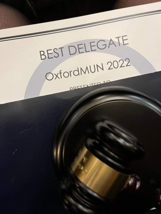 "Novemberben részt vettem az Oxfordi Egyetem által rendezett Oxford Global MUN konferencián, ahol az ENSZ működését modellezve diákoknak kell az ENSZ egyes szakosított szerveiben és bizottságaiban egy számukra kijelölt országot egy adott témában hűen képviselni.