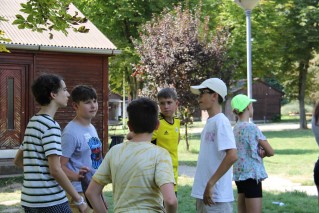 A reggeli torna is elmarad, hagynak aludni. Nem mondom, hogy nem vagyunk fáradtak, de szívesen kelünk fel, várjuk az újabb élményeket. Hazaindulás előtt még játszunk ezt-azt. Az alszik a város különösen illik a reggeli hangulathoz: alszik a tábor.