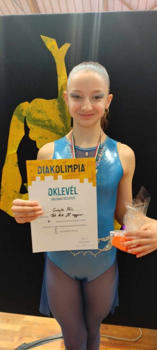 Aliz remek, szinte hibátlan gyakorlatot bemutatva, korcsoportjában 12 versenyzőt maga mögé utasítva szerezte meg az aranyérmet, és így büszke toldys diákként állhatott fel a dobogó legfelső fokára.