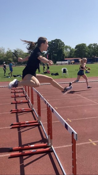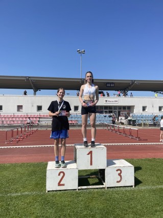Maneschg Viktória (9. b) első gátfutó versenyén, 100 méter női gáton egy nagyon szép 4. helyezést ért el.