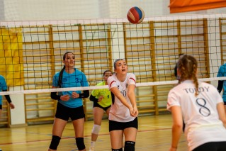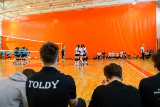 Vasárnap ismét kora reggel keltünk, és 8:30-kor már pályán is voltunk. Ezt a meccset úgy fogtuk fel, hogy bármi történik is, mi nagyon büszkék vagyunk magunkra, hiszen már a 4. hely biztosan elérhető. Ami azért, valljuk be… nem semmi! Ennek ellenére nagy lendülettel és elköteleződéssel vágtunk neki a mérkőzésnek, avval a bizalommal, hogy mi ezt meg tudjuk nyerni. Erősen indítottunk és az első két szettben, hihetetlenül szép és okos játékkal meg is nyertük, de a harmadik szettre beütött a fáradtság. Ekkor már a hétvégénk 5. meccsét, és sokadik szettjét játszottuk, és hiába voltunk nagyon ügyesek, a fáradtságot nem sikerült leküzdeni, így a 3. szettet elvesztettük. A következő szettnek ugyan megint erősen indultunk neki, de a szett közepén ismét beütött a kimerültség, és az ellenfél 19:24-re vezetett. A mélyponton azonban megmakacsoltuk magunkat, és 26:24-re visszahoztuk, és ezzel megnyertük a végső szettet! Hihetetlen, ahogyan olyan mélyről képesek voltunk felhúzni egymást, és bár egy pont elvesztése még egy szettet jelentett volna, mégis le tudta a csapat küzdeni azt a mentális blokkot, amibe a fáradtsága miatt került. Csodálatos amire képes ez a csapat! Ennek a meccsnek a megnyerése még egy dolgot jelentett. Biztossá vált, hogy érmet hozunk haza, és a következő meccset az első helyért játszhatjuk.