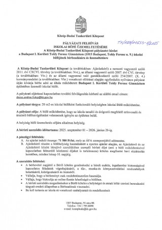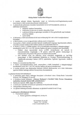 Pályázati felhívás az iskolai büfé üzemeltetésére