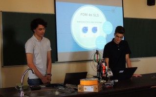 Barthó Bence és Posta Donát (5. a) a fizika előadóban 2017. május 16-án kedden délután megtartották az általuk épített 3D nyomtató bemutatóját.